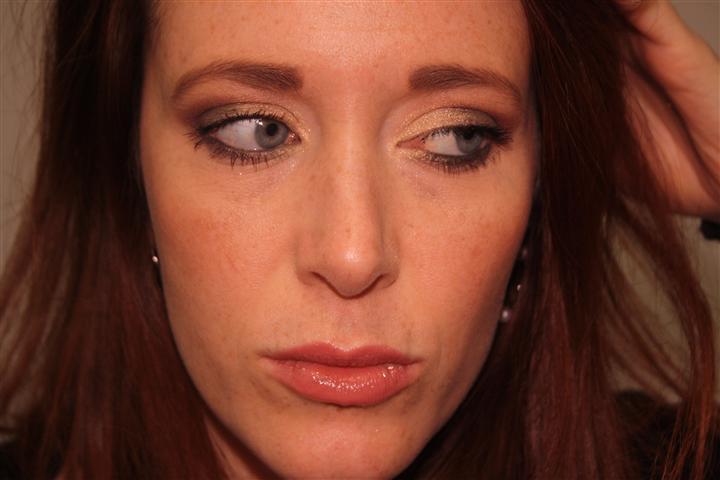Per il trucco sugli occhi ho usato di nuovo la mia nuova palette Balm Jovi più il color oro del duo Madina Antique Gold nella prima parte della palpebra. Al centro ho steso un verdone con glitter oro Lead Zeppelin e nella piega ho sfumato il borgogna Alice Copper. Anche sotto le ciglia inferiori ho applicato il verdone glitterato.