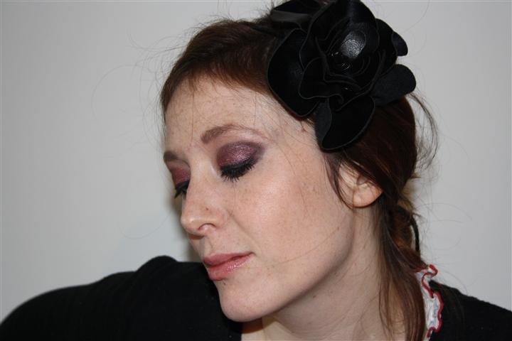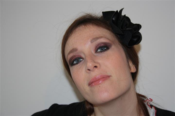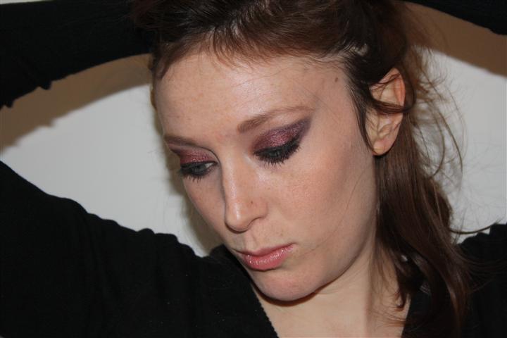 Alla fine ho picchiettato il centro della palpebra con l’ instant glow n. 10 di Madina, pigmento color vinaccia shimmer.