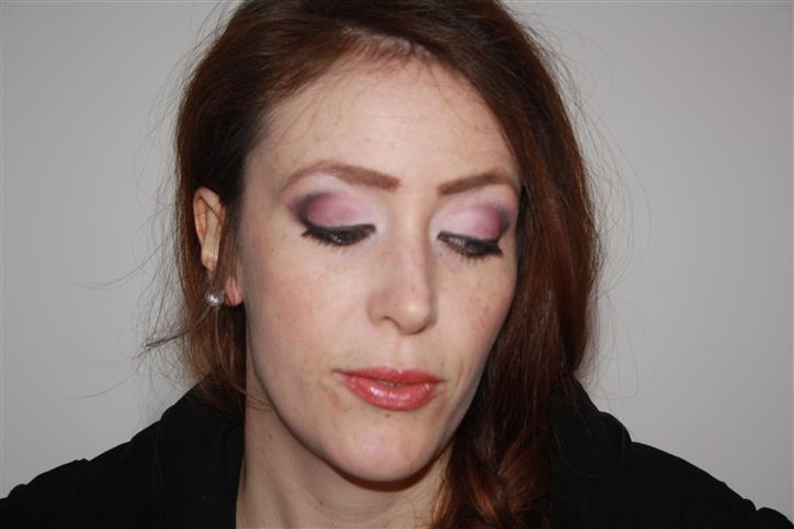 Nella prima parte dell’ occhio ho steso Vanilla di Mac, nella parte centrale ho sfumato un color bordeaux preso dal beauty book della Elf e nella piega ho applicato Creep un quasi nero glitterato. Sotto l’ arcata sopraccigliare ho applicato Virgin, il carne della Naked.