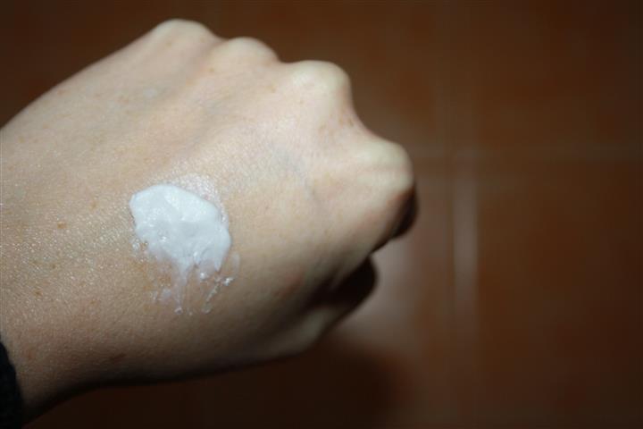 Ha la consistenza che è un misto tra una crema e un burro, è molto compatta di un bel colore bianco. Mi piacciono le creme spesse perché mi sembra funzionino di più eheheh.