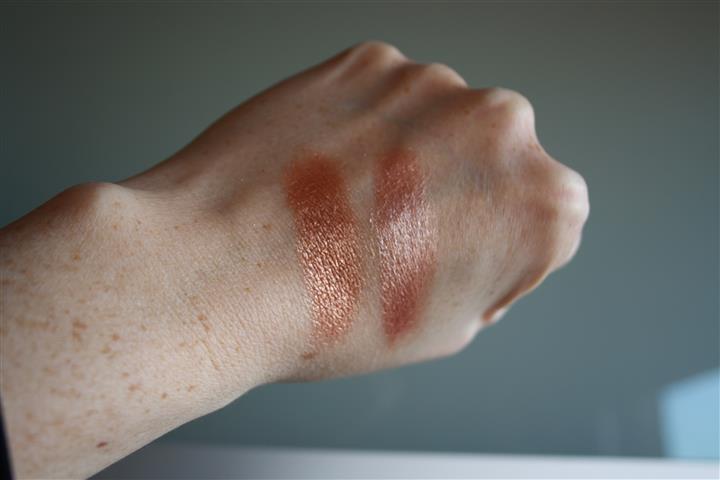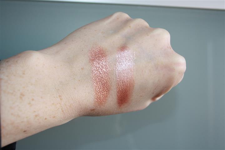 Avete capito chi è uno e chi l’ altro? Lo si può dedurre dalla resa in effetti si vede che quello a sinistra è in polvere mentre quello a destra è in crema, anche se non così tanto perché l’ ombretto in polvere, pur essendo polveroso è in un certo qual modo cremoso.