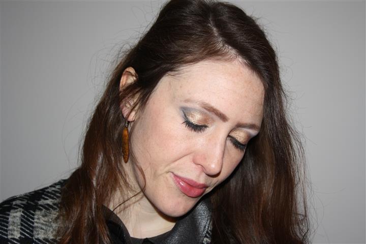 La mia intenzione era di abbinare il trucco e orecchini che sono l’ ultimo regalo ricevuto. Mi piacciono moltissimo perché trovo mi illuminino il viso. Il trucco, invece che sembrare brono dalle foto sempre più un oro, peccato perchè come colore centrale ho usato, della Naked, Half baked che molte di voi conosceranno.