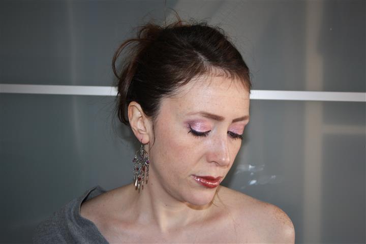 Per il trucco occhi ho usato solo colori Mac, su tutta la palpebra ho steso il pigmento Rose Light e ho scurito la piega con Trax un bronzo scuro shimmer con riflessi borgogna.
