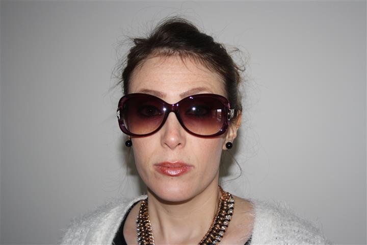 Mi piacciono moltissimo! Adoro che siano grandi e la forma a farfalla. Noterete che non sono in nero o in marrone, colori classici, ma viola con le lenti degradanti dall’ alto verso il basso. Le asticelle sono unite al corpo dell’ occhiale da una V color argento.
