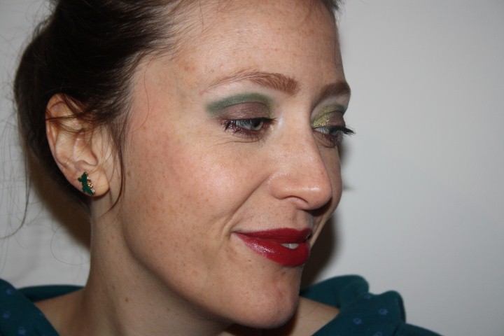 Nella prima parte ho applicato Fig un verde pisello shimmer, nella parte centrale Entwined un taupe scuro con brillantini dorati e nella piega il verde scuro mat Tree of Life.