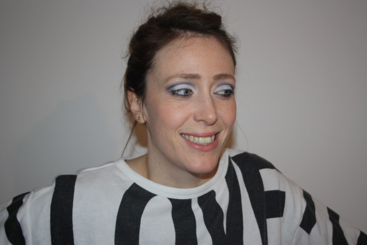 1. Assomiglia un po’ al trucco di scena che ci facciamo ai saggi di danza 🙂 a me non capita quasi mai di abbinare il trucco ai vestiti, di solito faccio un po’ come mi pare 😀