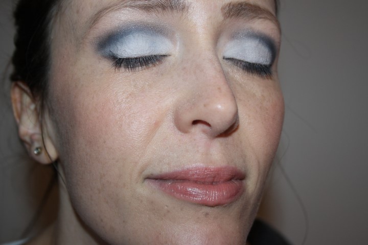 Il trucco è davvero semplice ho steso su tutta la palpebra mobile white bunny di Neve un bianco mat e ho sfumato nella piega con un nero mat di kiko che nella foto sembra grigio bluastro, mi sarebbe piaciuto dare uno stacco più intenso.