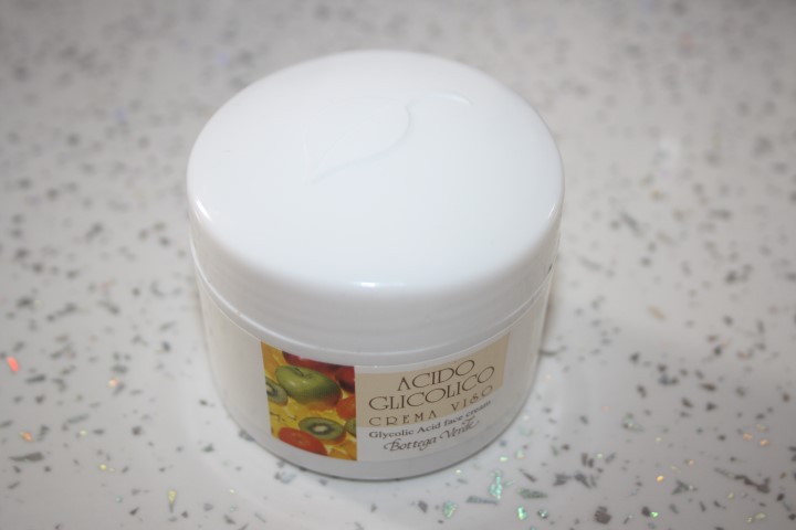 Dopo aver deterso il viso è il momento della crema. Quella che sto usando in questo momento è quella acido glicolico di Bottega Verde. Non mi sono ancora fatta un’ idea precisa di questo prodotto perché lo uso da poco. Qualcuno lo conosce?