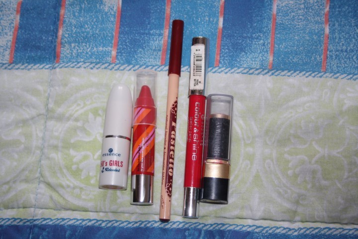 Eccolo qua i miei rossi! Il rosso non è un colore che indosso spesso ma comunque mi piace. Il primo della Essence è un rosso che più rosso non si può e faceva parte della collezione 50’s girls reloaded. Il chubby è tra i nuovi arrivati, si chiama Two Ton Tomato e per quanto mi riguarda è il più portabile. Torna la Essence con un lipstick pencil, il colore mi piace ma tende ad andare dove vuole. Molto elegante è il color Vino dei Pastelli di Neve. Ultimo ma primo nel mio cuore è il rossetto rosso della Broadway colour di mia mamma.