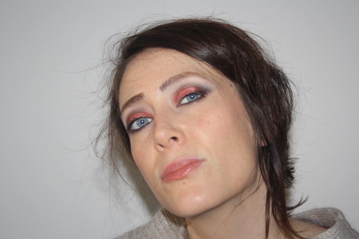 Ho voluto dare più luminosità all’ intero trucco picchiettando il pigmento Spicy Smoke, un rosso mattone shimmer, su tutta la palpebra mobile.