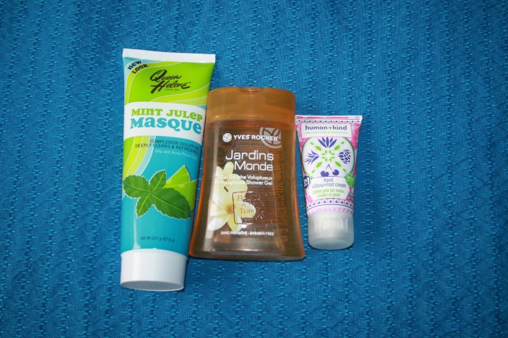Questi che vedete nella foto sottostante sono sempre regali di Fefy del blog Onigiri Brunch, si tratta della maschera alla menta di Queen Helene che attaccherò questa settimana e so già che mi farà impazzire, di un bagnoschiuma di Yves Rocher ai fiori di Tiarè che mi porterò in vacanza perché credo che la fragranza sia adattissima e una crema piedi della Human &Kind perché le creme piedi non sono mai troppe 🙂