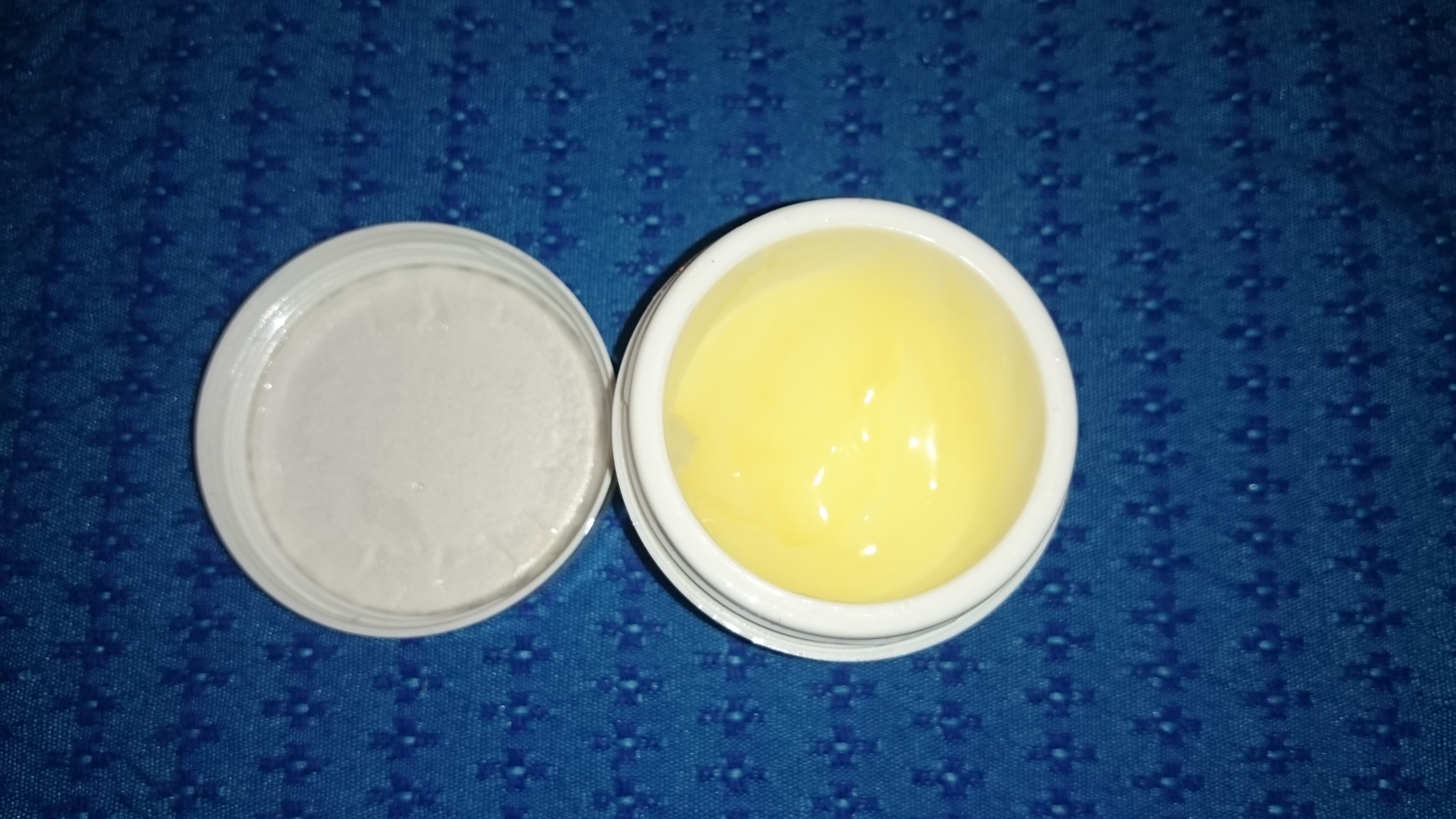 L’ unguento si presenta proprio come un unguento, sembra un olio di cocco più giallino che a contatto con il calore della pelle si scioglie e si trasforma in un olio.