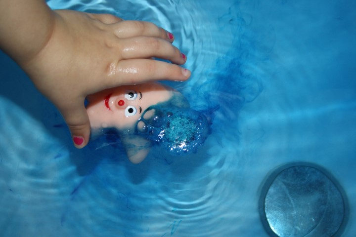 Che idea carina, trasformano la vasca da bagno nel mare! ^_^