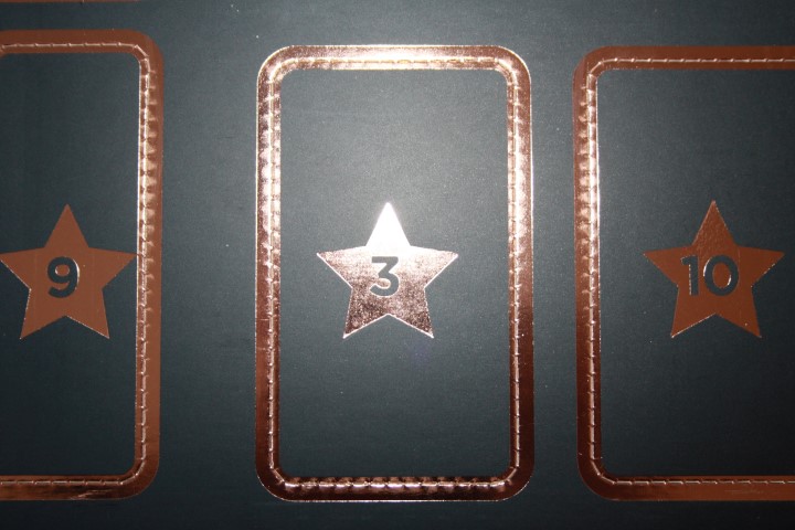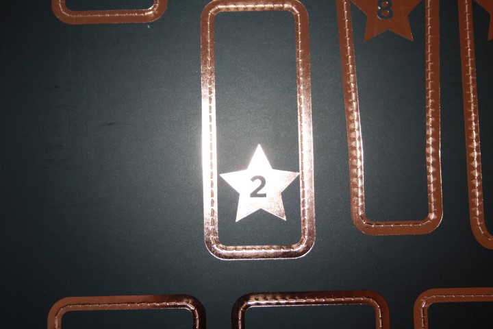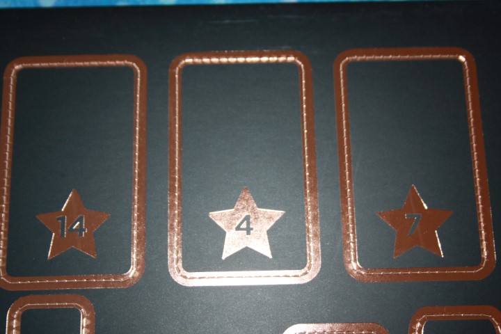 Il calendario è davvero molto bello è nero con le scritte dorate e si apre a libro, è anche piuttosto grosso. Le caselline sono 25 e dalla loro forma si può quasi intuire il contenuto.