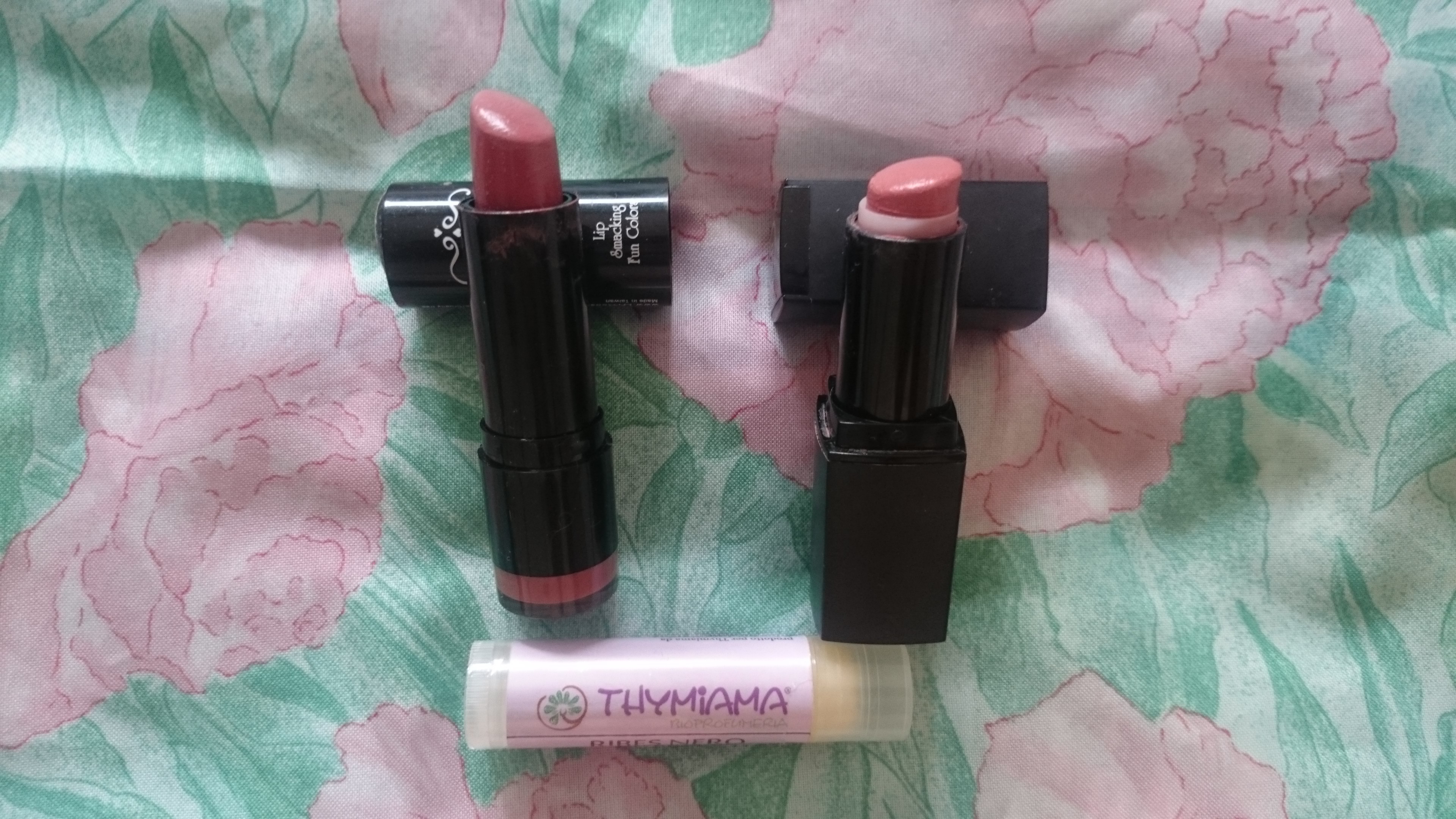 I prodotti per le labbra più usati sono tre: il balsamo labbra al ribes nero di Thymiama, il rossetto Milan di Nyx, un malva e il nude rosato Rosy Raisin di Elf.