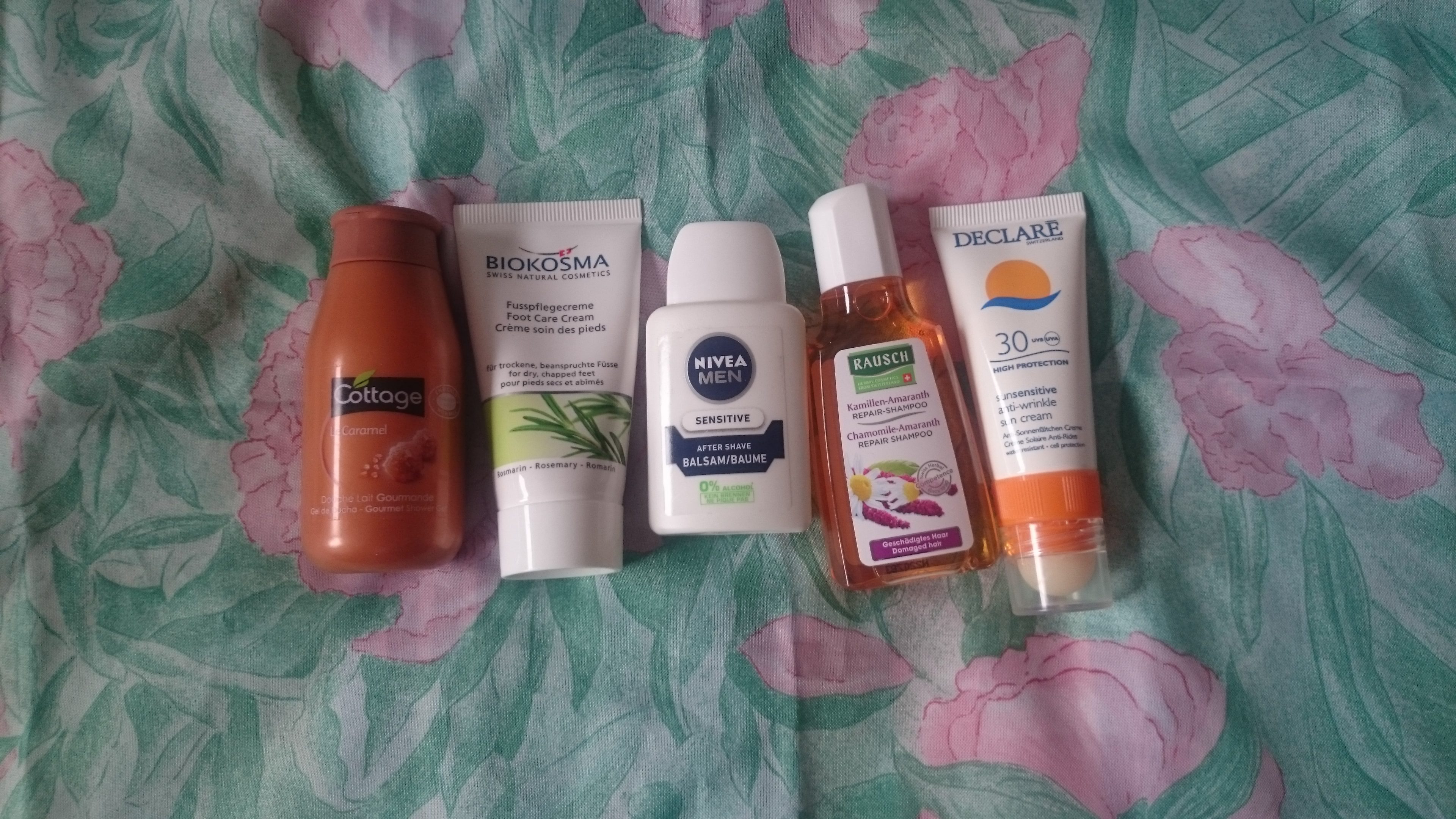 Queste sono una serie di adorabili minitaglie, il primo e un latte doccia al caramello, il secondo una crema piedi della Biokosma, il terzo è in dopobarba Nivea, il quarto uno shampoo alla camomilla della Rauch e poi la chicca crema solare con protezione labbra incorporata!!!