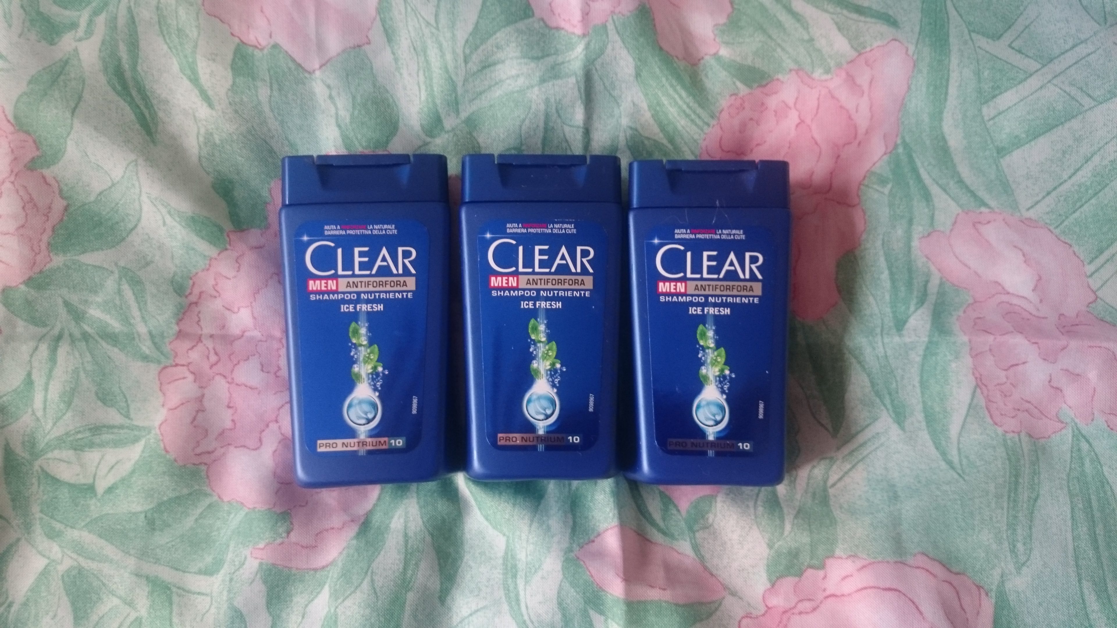 Tre minitaglie di shampoo Clear Ice Fresh, vi lascio immaginare il profumo!