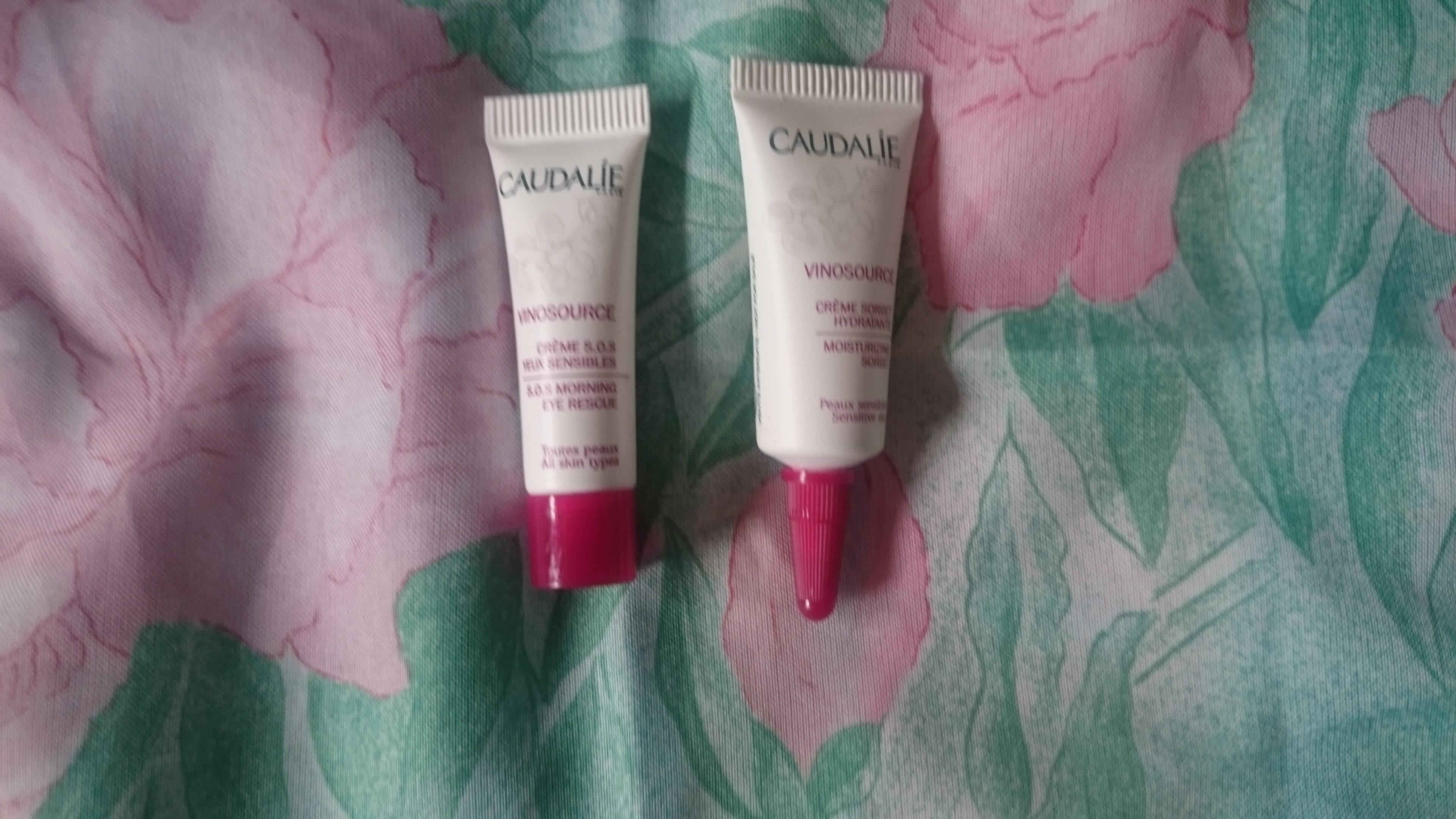 Due campioncini Caudalie della linea Vinosource, una è il contorno occhi e l’ altra è la crema viso.