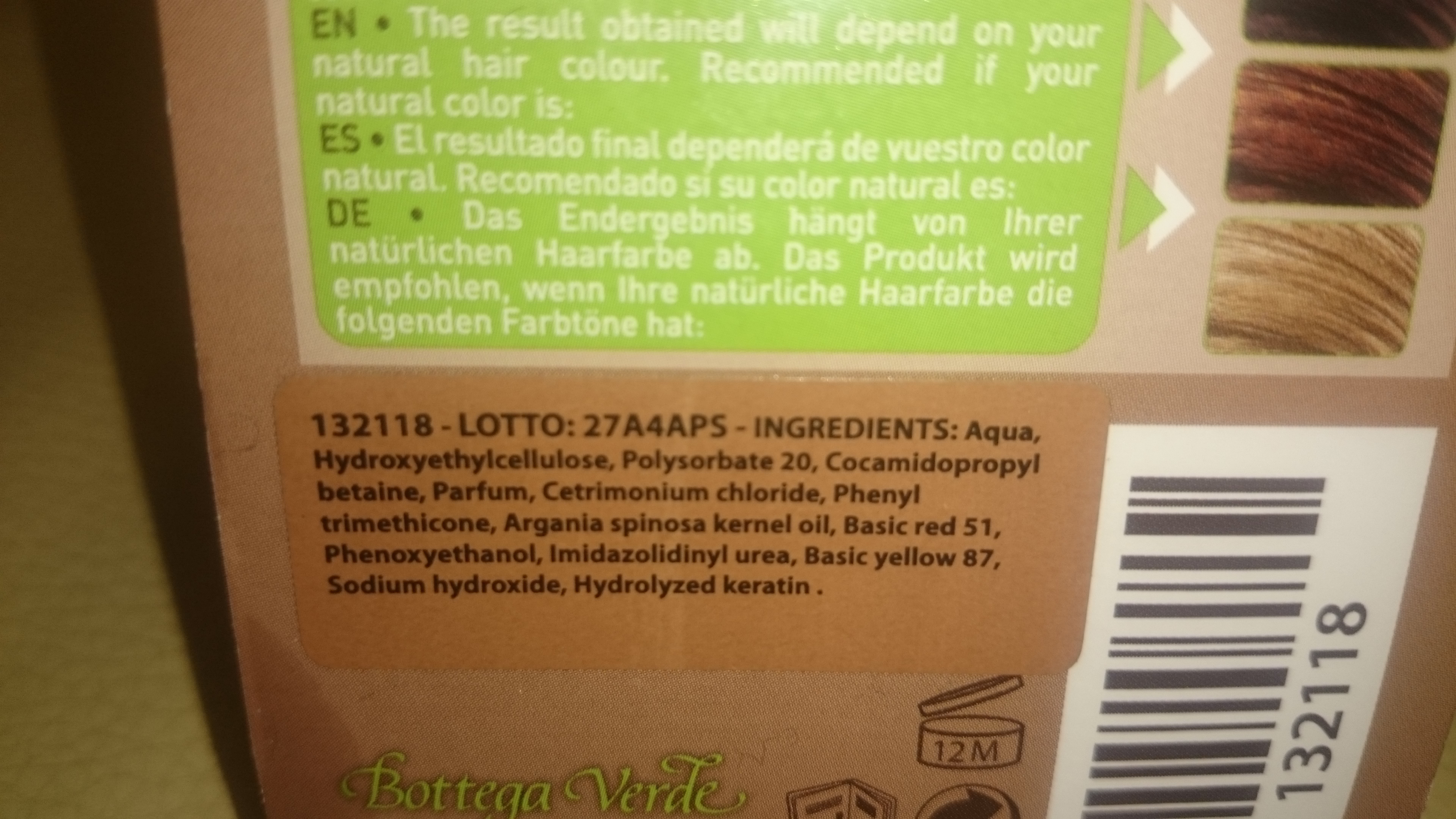 Non contiene ammoniaca ed è senza coloranti ad ossidazione, vi lascio la lista degli ingredienti qui sotto.