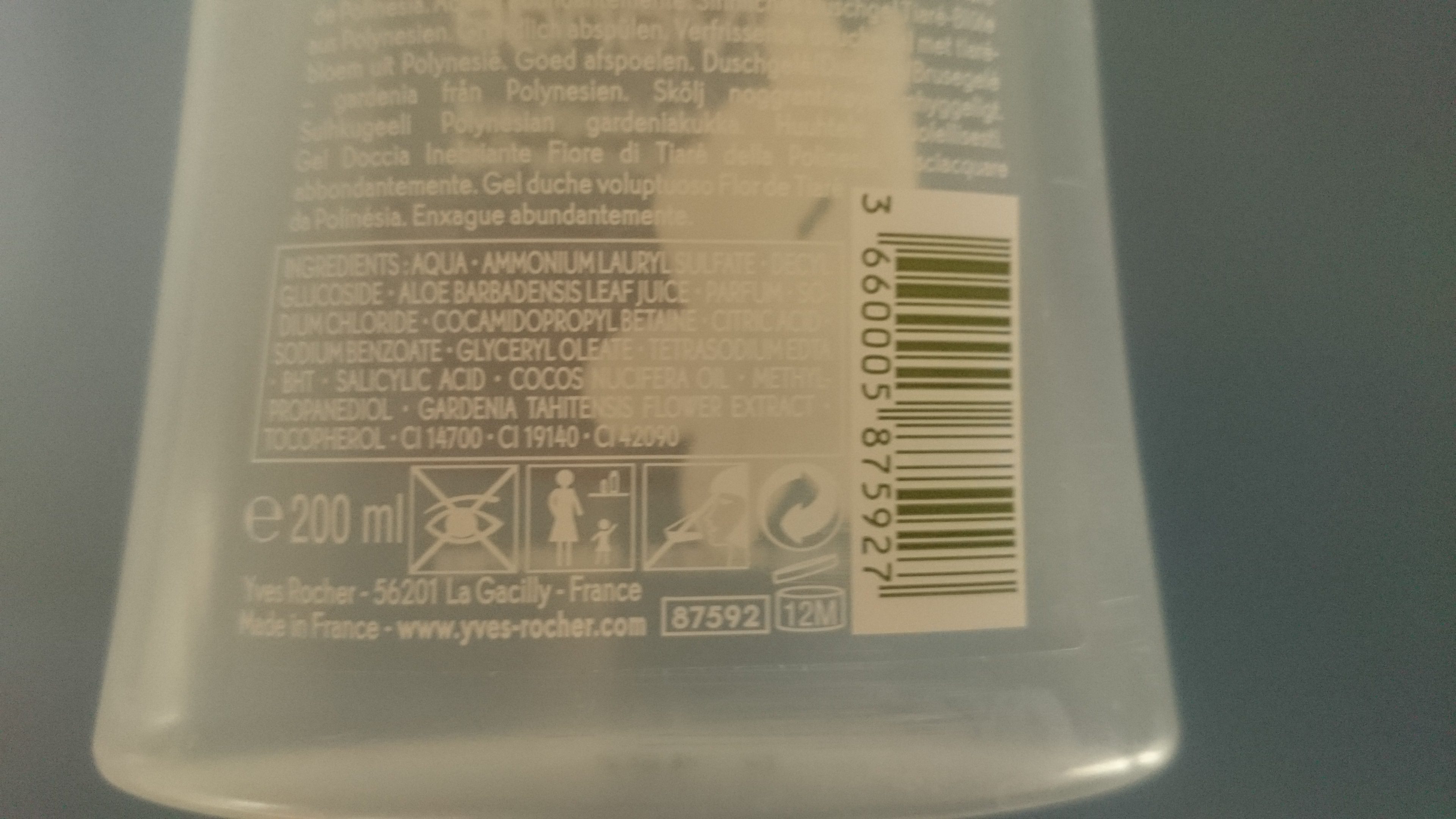 YVES ROCHER JARDIN DU MONDE VOLUPTOUS SHOWER GEL FLEURE DE TIARE’