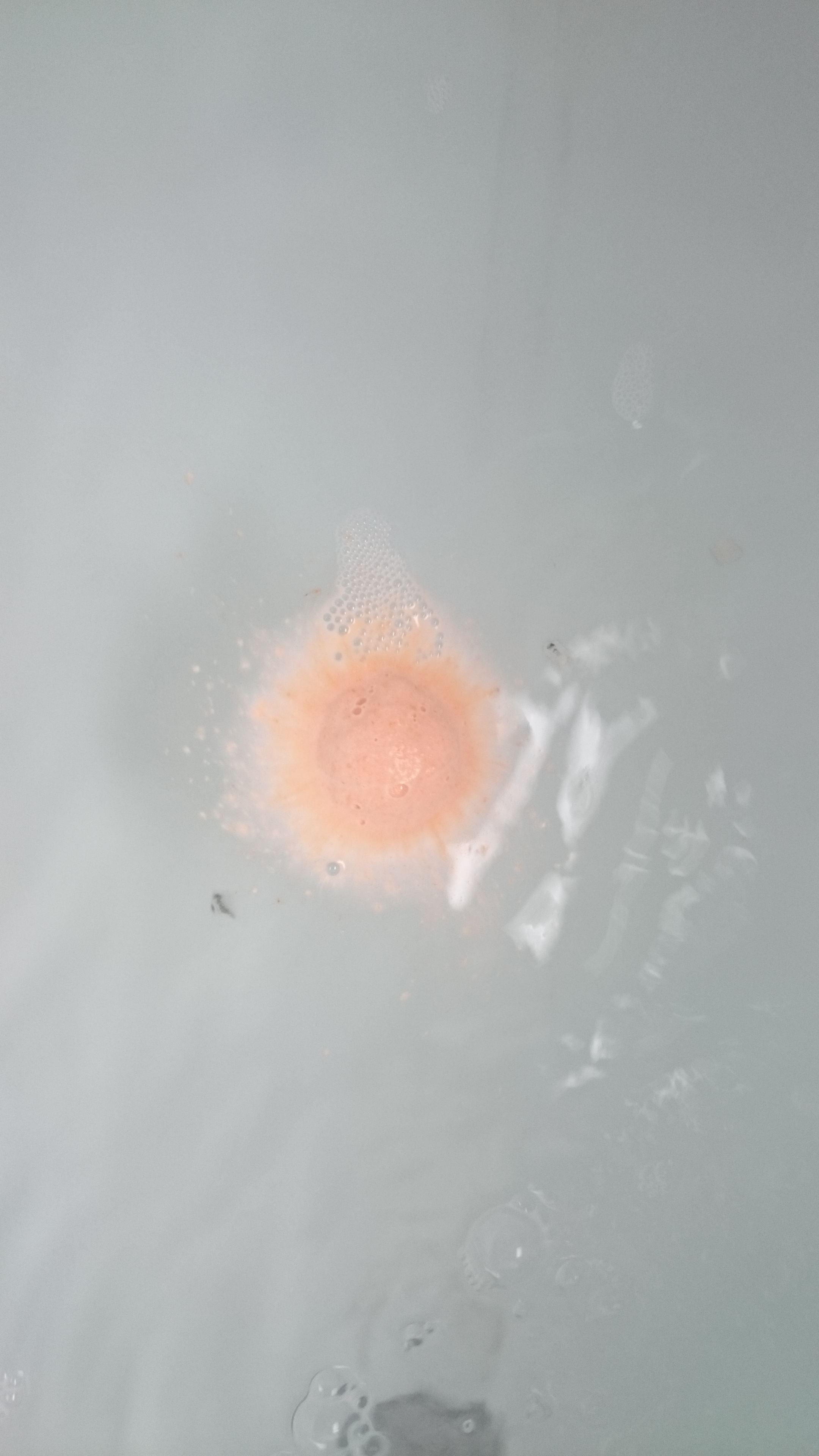 A contatto con l’ acqua inizia a frizzare e a sciogliersi rilasciando profumo e colore e una volta che si è tutta disfatta mescoliamo con la mano. Terminato questo procedimento l’ acqua avrà assunto un colore pescato chiaro.