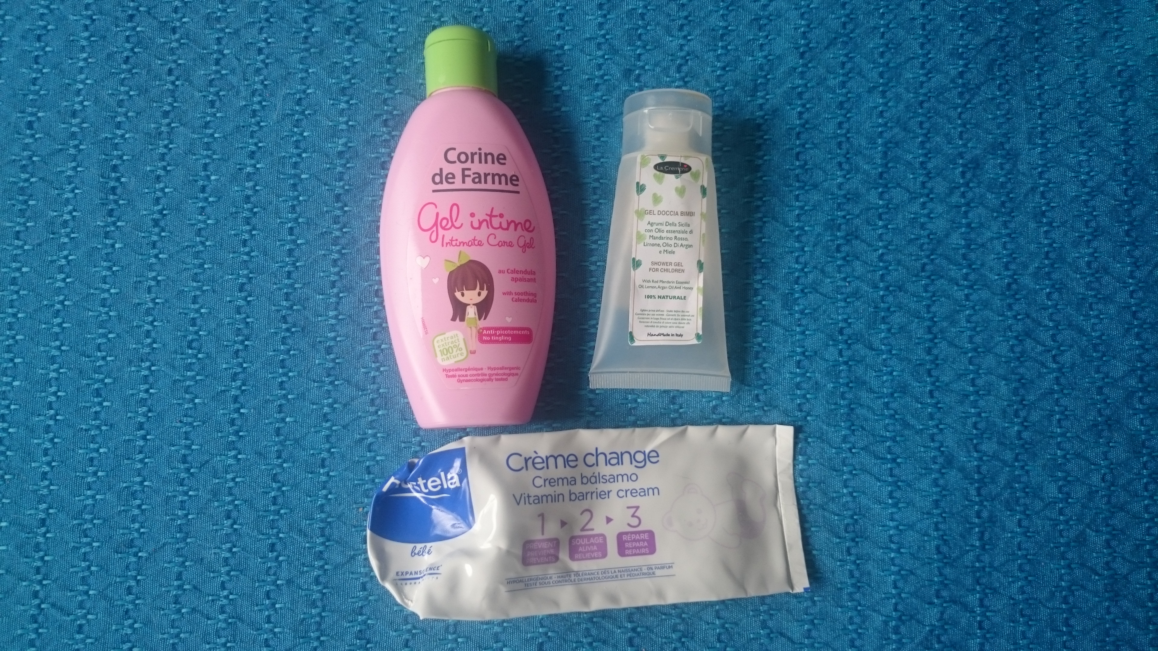 . CORINE DE FARME – GEL INTIME. L’ ho acquistato al Cosmoprof ed usato per Caterina perché indicato per le bimbe non ancora sviluppate. La confezione è davvero molto carina ed invitante. Lo abbiamo trovato delicato. Lo consiglio e lo ricomprerò. Il prezzo è di 1,98 euro. Vi lascio la recensione completa: https://francimakeup.com/2017/05/24/corine-de-farme-gel-intime/