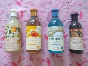 Allo stesso prezzo ho acquistato due bagnodoccia da 400 ml: Neroli e Mar Morto; un bagnodoccia al cioccolato da 250 ml ed infine uno shampoodoccia al miele da 400 ml.