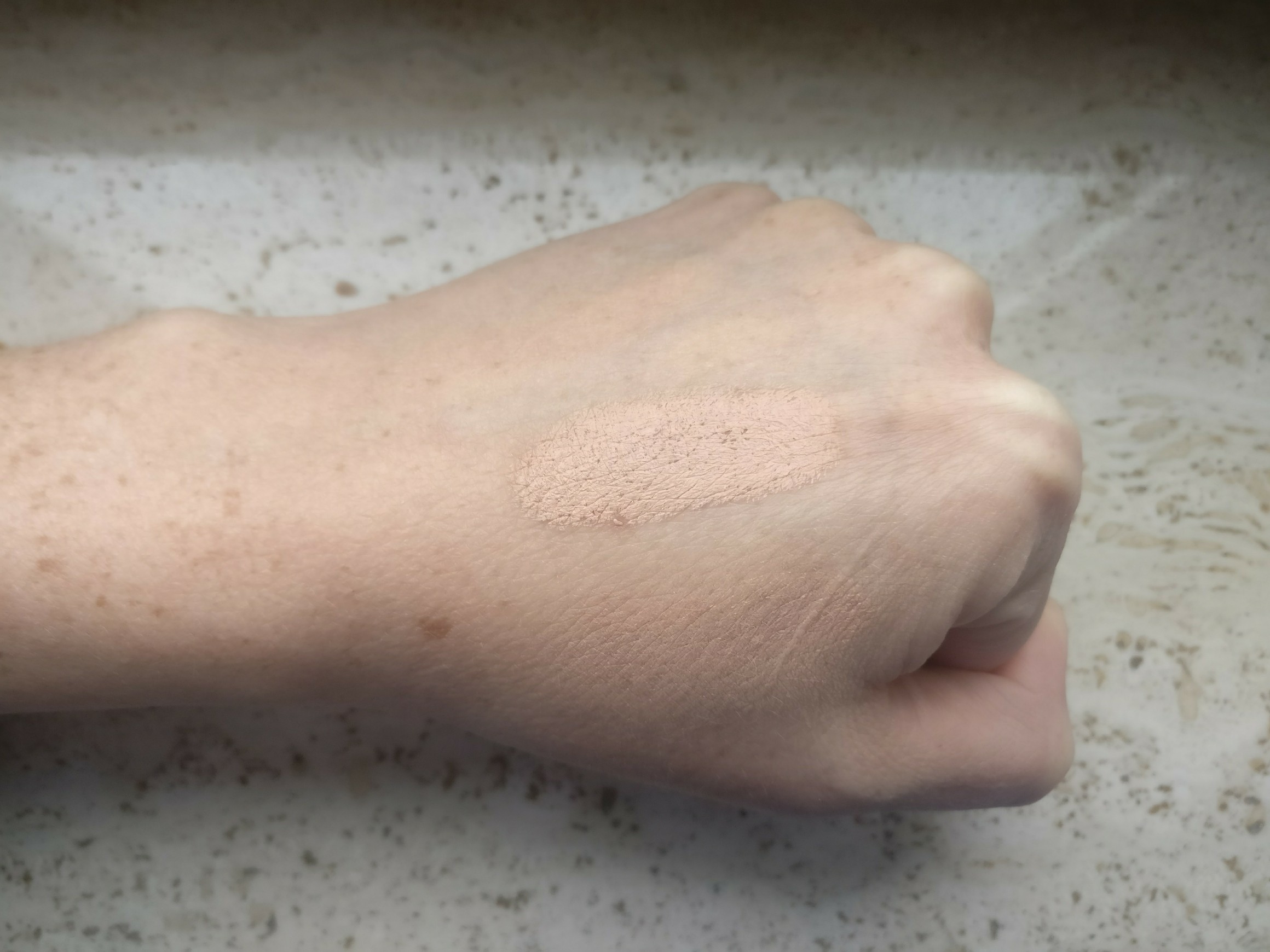 Il colore è un nude leggermente aranciato, si stende facilmente e grazie al diametro ridotto dello stick si riesce ad andare a posizionare anche in posti un po’ scomodi come i lati del naso. Una volta spalmato è come se si fondesse e si asciugasse sulla pelle.