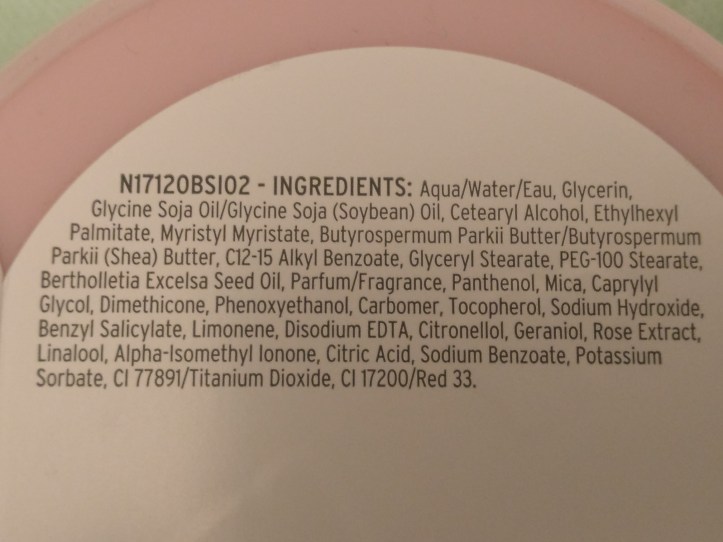 In questo periodo, dopo la doccia, per idratare la pelle del mio corpo sto utilizzando il burro corpo illuminante British Rose di The Body Shop che avevo trovato nel calendario dell’ Avvento.