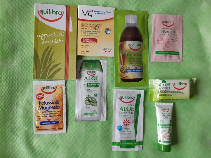 Ed infine per tornare in tema beauty vi mostrerò cosa abbiamo trovato nei sacchettini di Equilibra, uno degli sponsor dell’ evento.