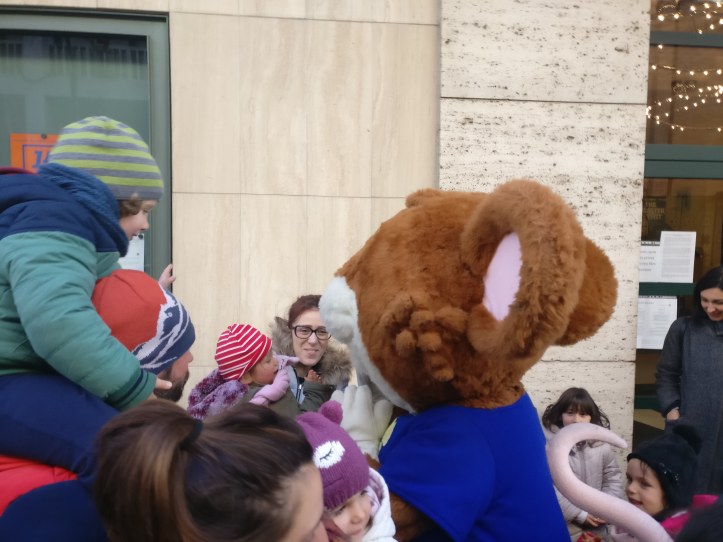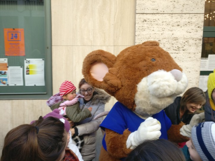 A fine film, all’ uscita gli sponsor (Equilibra, Coop, Tapporosso, Famideal) hanno offerto pandoro e grissini e i bimbi hanno avuto l’ occasione di conoscere il loro beniamino Top Tip.