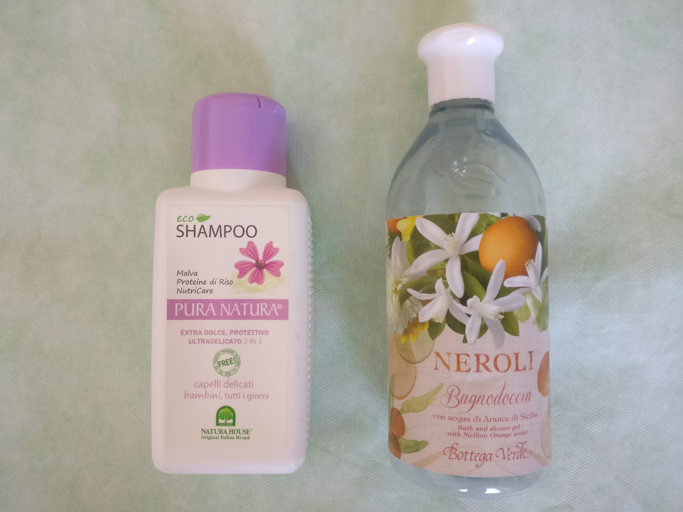 Iniziamo con i prodotti delle bimbe, come potete vedere le confezioni carine mi vengono in aiuto al momento del bagnetto.
