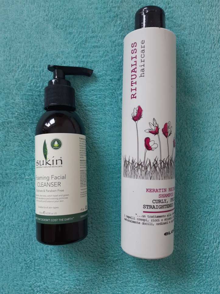 . SUKIN – FOAMING FACIAL CLEANSER. Questo prodotto viene, come mi ha ricordato Manu, dall boutique del Cosmoprof 2018. E’ un gel trasparente che ha contatto con l’ acqua non fa particolare schiuma. Io l’ ho utilizzato tutte le mattine per la detersione del viso e mi è piaciuto molto. La profumazione è erbacea medicinale, non saprei definirla esattamente, è particolare a me non infastidisce. E’ promosso.