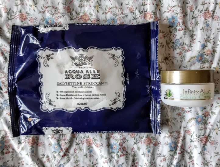 . ACQUA ALLE ROSE – SALVIETTE STRUCCANTI. Era un po’ che non ricompravo più queste salviette struccanti. Sanno del tonico acqua alle rose che tutti conosciamo. Costano all’ in circa 3,00 euro per 20 salviette. Non sono tra le più efficaci mai provate ma il profumo è buono e anche la confezione mi attira. Potrei ricomprarle ne avessi bisogno.