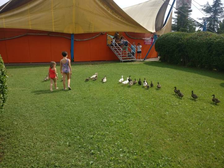 All’ interno del parco ci sono un sacco di anatre che vivono lì, e ci è capitato che ci attraversasse la strada mamma anatra seguita dai sui piccoli.