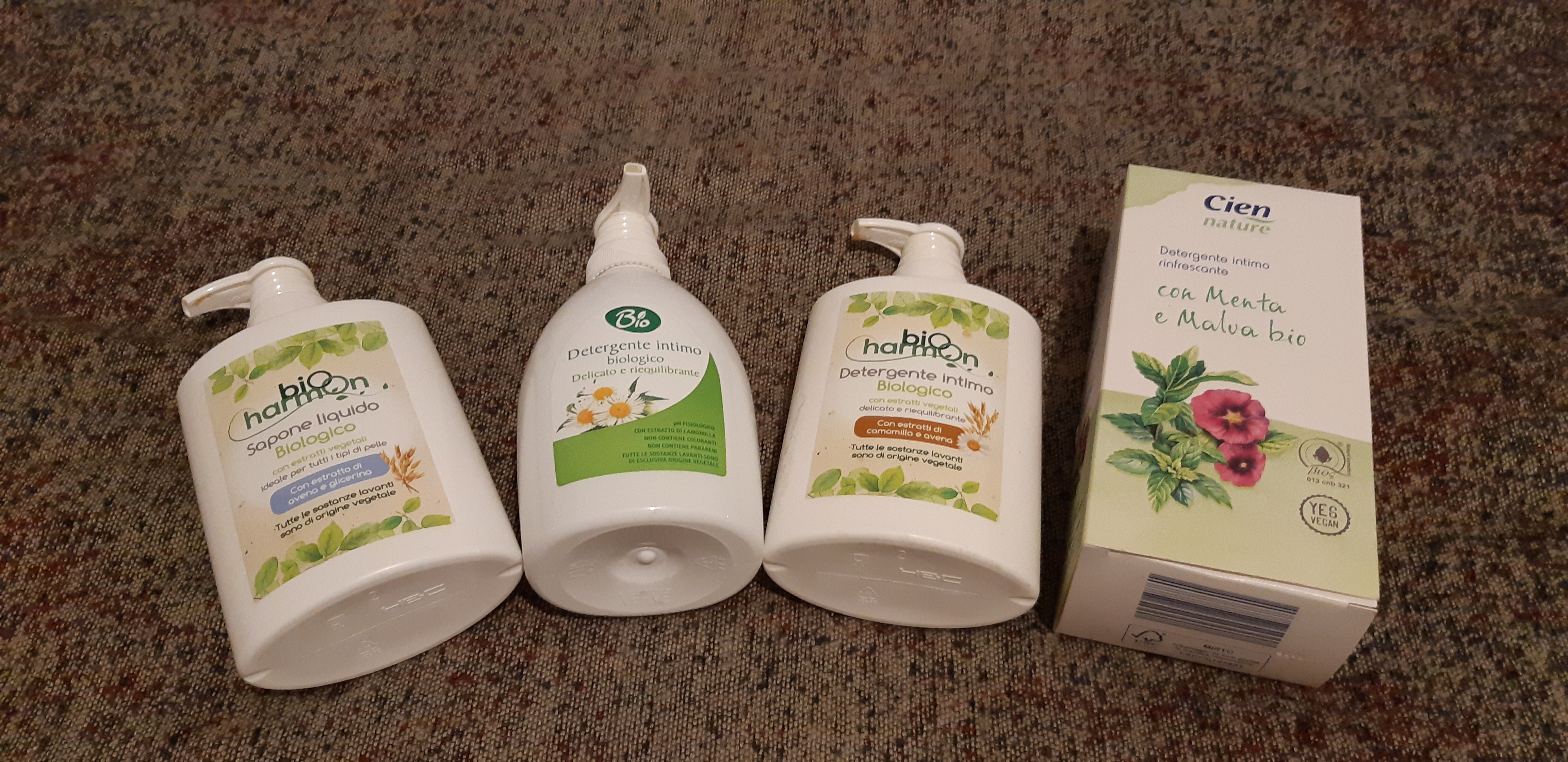 . BIO HARMON – DETERGENTE INTIMO. Ovviamente non potevo non provare il sostituto del mio amato detergente intimo Bio. Questo non contiene solo camomilla ma anche avena. Ha una consistenza in gel, fa una leggera schiuma e si sciacqua facilmente. È un prodotto delicato che ha un buon rapporto qualità prezzo. Anch’esso non ha coloranti, parabeni e tutte le sostanze lavanti sono di origine vegetale. Se proprio devo trovare un difetto, preferivo l’altro per consistenza, questa tende a raggrumarsi di più e ad ostruire il buco di uscita del prodotto. Farò una recensione dedicata.