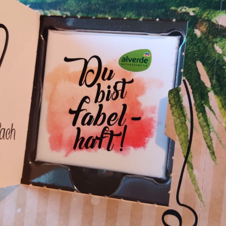 Nella casella numero cinque ho trovato il primo premio farlocco, ovvero una calamita con scritto in tedesco ” Sei favolosa ” , grazie Kami per la traduzione