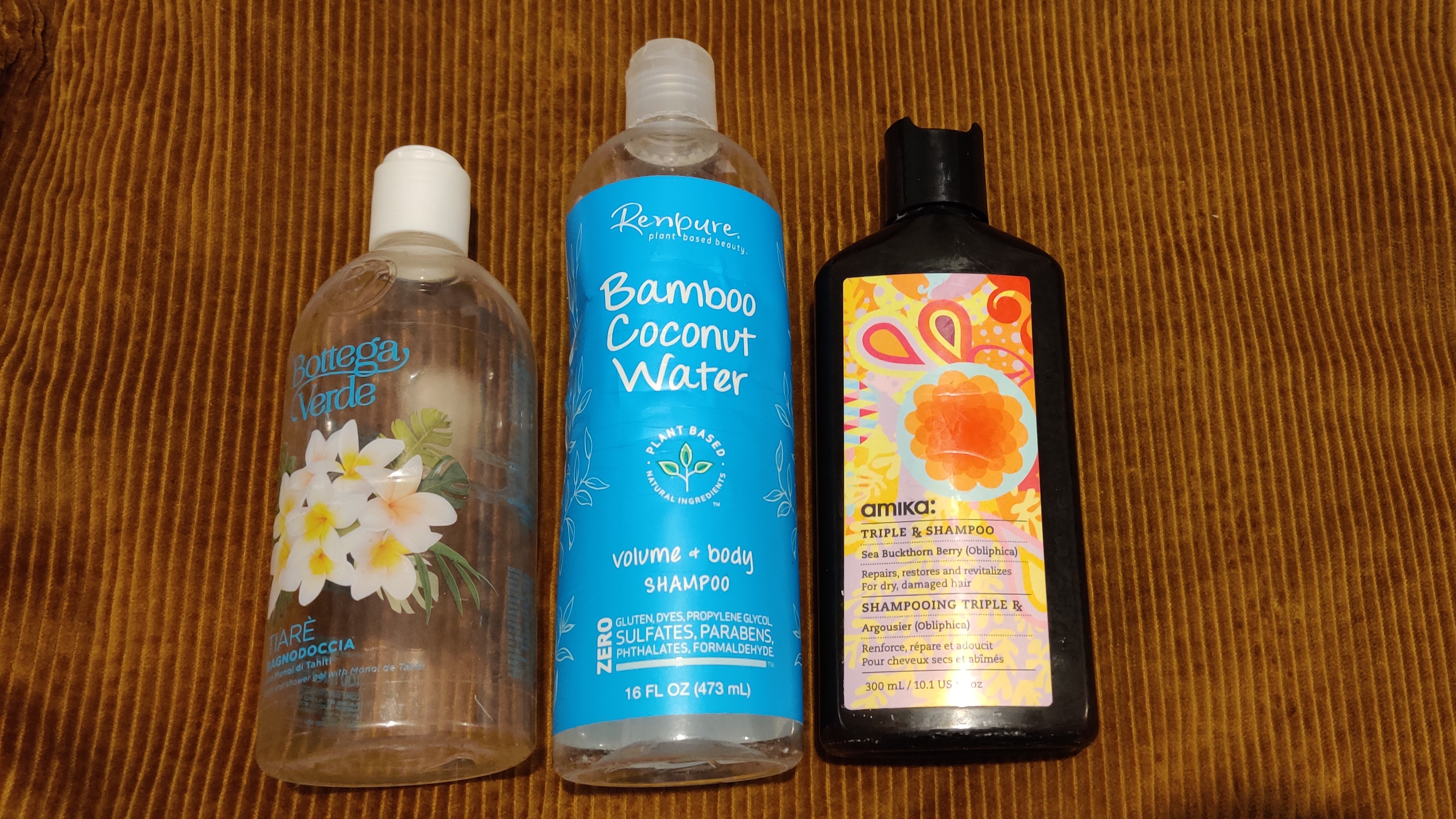 .RENPURE – BAMBOO COCONUT WATER. Avevamo trovato questo brand al Cosmoprof 2019. Siamo passati in un momento propizio:  stavano svendendo tutto. Questa azienda produce prodotti plant-based con ingredienti naturali. Lo shampoo è trasparente e ha una consistenza in gel. Lava bene i capelli senza essere aggressivo. Va bene per tutta la famiglia. I capelli dopo il risciacquo rimangono morbidi. L’unico punto a sfavore è l’odore, non so descriverlo,posso solo dirvi che è naturale. Vi farò una recensione.