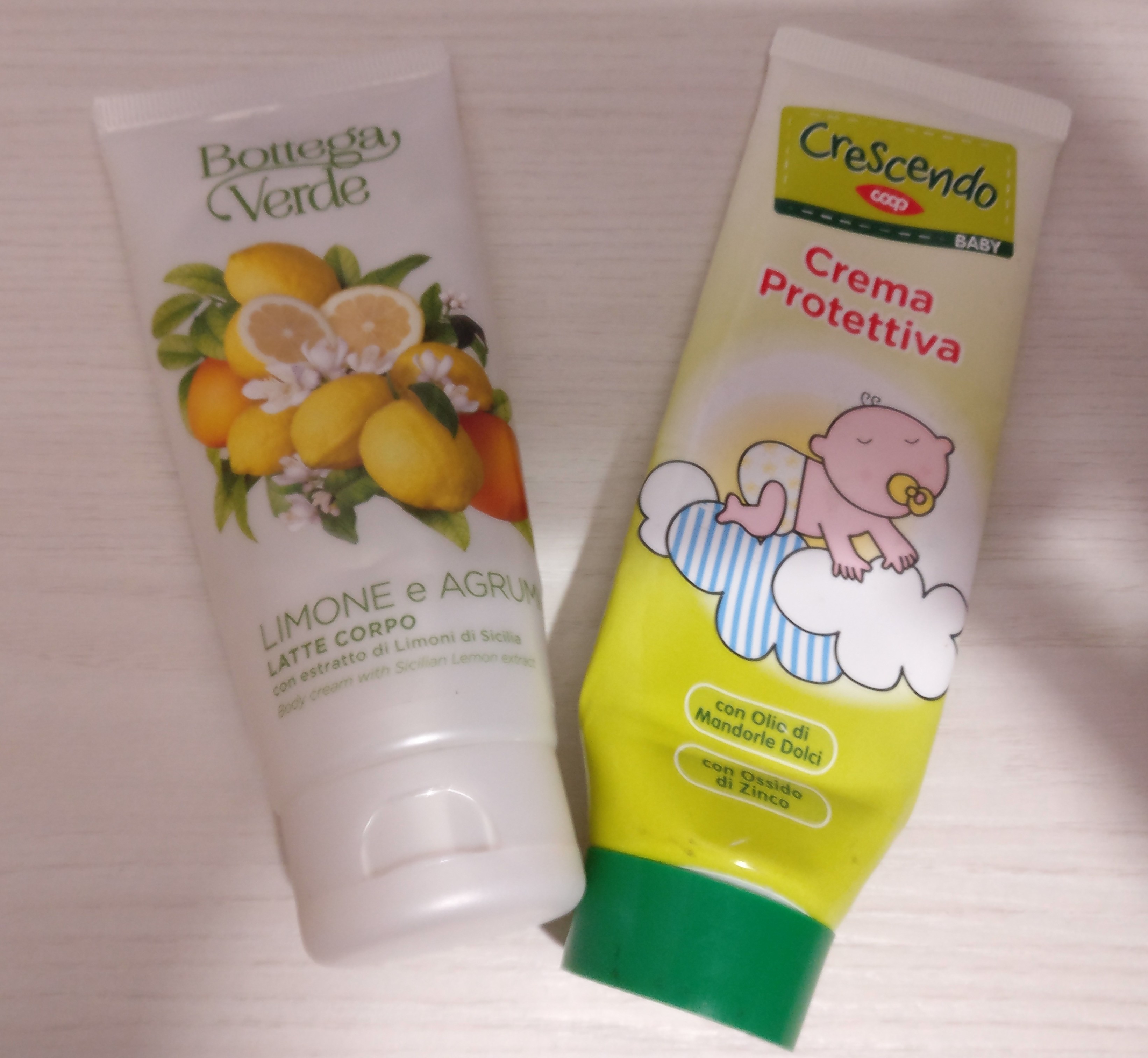 . CRESCENDO COOP – CREMA PROTETTIVA. Ho acquistato questa crema protettiva innumerevoli volte. È bianca e compatta. Ormai la utilizziamo solo al bisogno alternandola ad altre marche. Personalmente la consiglio, è perfetta da borsa da passeggino.