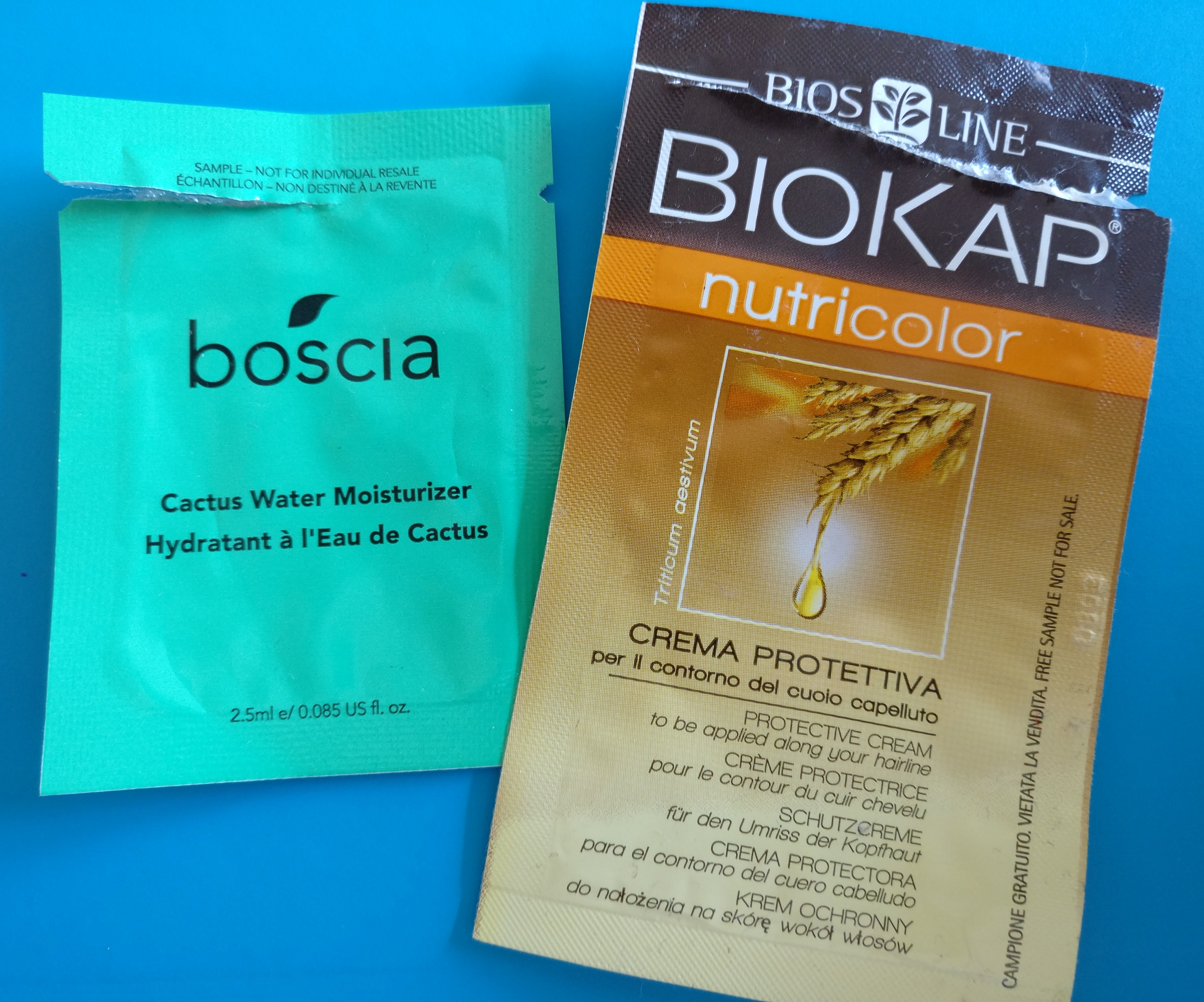. BOSCIA – CACTUS WATER MOISTURIZER. Ho ricevuto questo campioncino con il regalo che mi ha fatto Susy. Non avevo ancora provato niente all’acqua di cactus. Questo idratante mi è piaciuto un sacco, perché è molto rinfrescante e si asciuga in fretta.  È perfetto per iniziare la giornata.