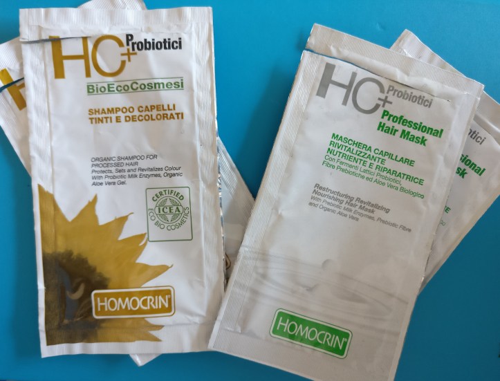 . SPECCHIASOL HOMOCRIN – SHAMPOO CAPELLI TINTI E DECOLORATI. Anche queste bustine facevano parte di un kit casalingo per fare la tinta. All’interno troviamo fermenti lattici probiotici, fibre probiotiche, aloe vera e propoli. Lava bene il capello e aiuta ad eliminare i residui di tinta. Ha bisogno del balsamo dopo risciacquo.