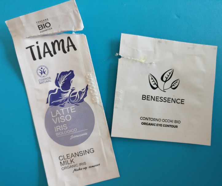 . TIAMA – CLEANSING MILK ORGANIC IRIS. Non ricordo da dove arrivi questo campioncino. Non l’ho utilizzato come struccante ma come detergente per un paio di mattine circa. Mi è sembrato delicato. È una crema bianca che io ho applicato sul viso umido per poi sciacquarla. Non mi è sembrato male anche se un campioncino è troppo poco per valutare questo tipo di prodotto.