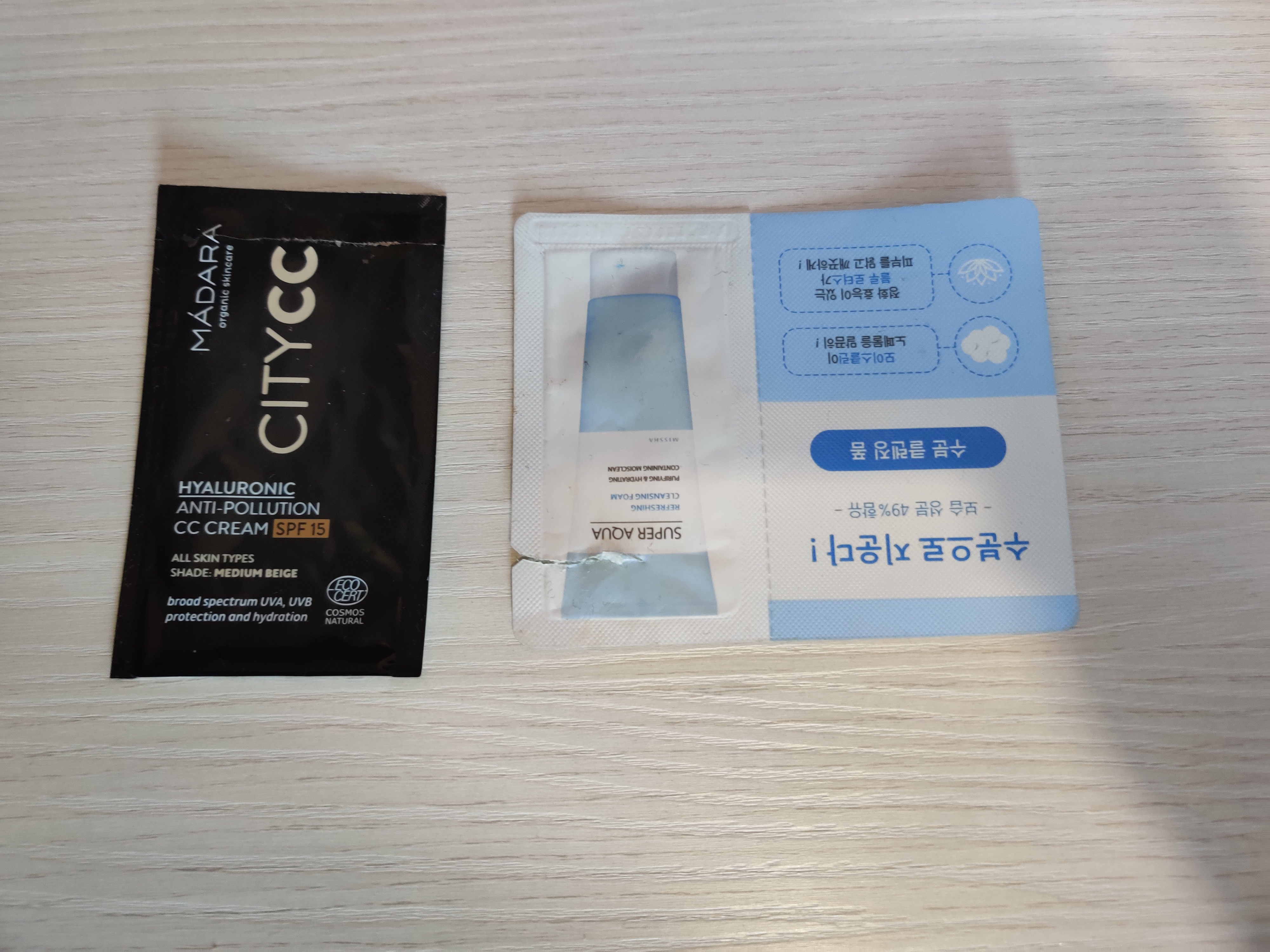 MADARA – CC CREAM ANTI POLLUTION SPF 15. La colorazione è risultata un po’ scura per me e ho dovuto a sfumarla bene. Non mi è dispiaciuta, sulla pelle rimane abbastanza leggera anche se non dura da mattina a sera. Potrei dare un’altra chance perché è molto difficile capire la validità da un campioncino.