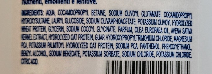 La formula è di origine naturale senza sles, peg e parabeni. È un prodotto certificato ICEA e questa è la lista degli ingredienti: