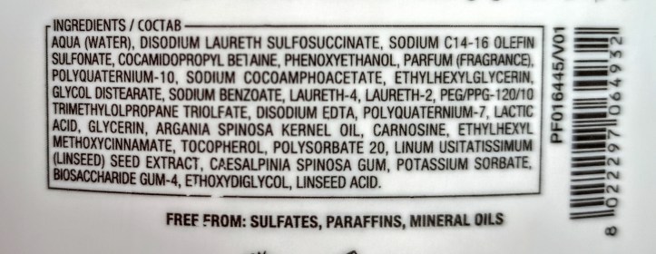 Contiene Urban Defence Pro3, Shine Fix and Color Fix Complex. È senza solfati e questa è la lista degli ingredienti: