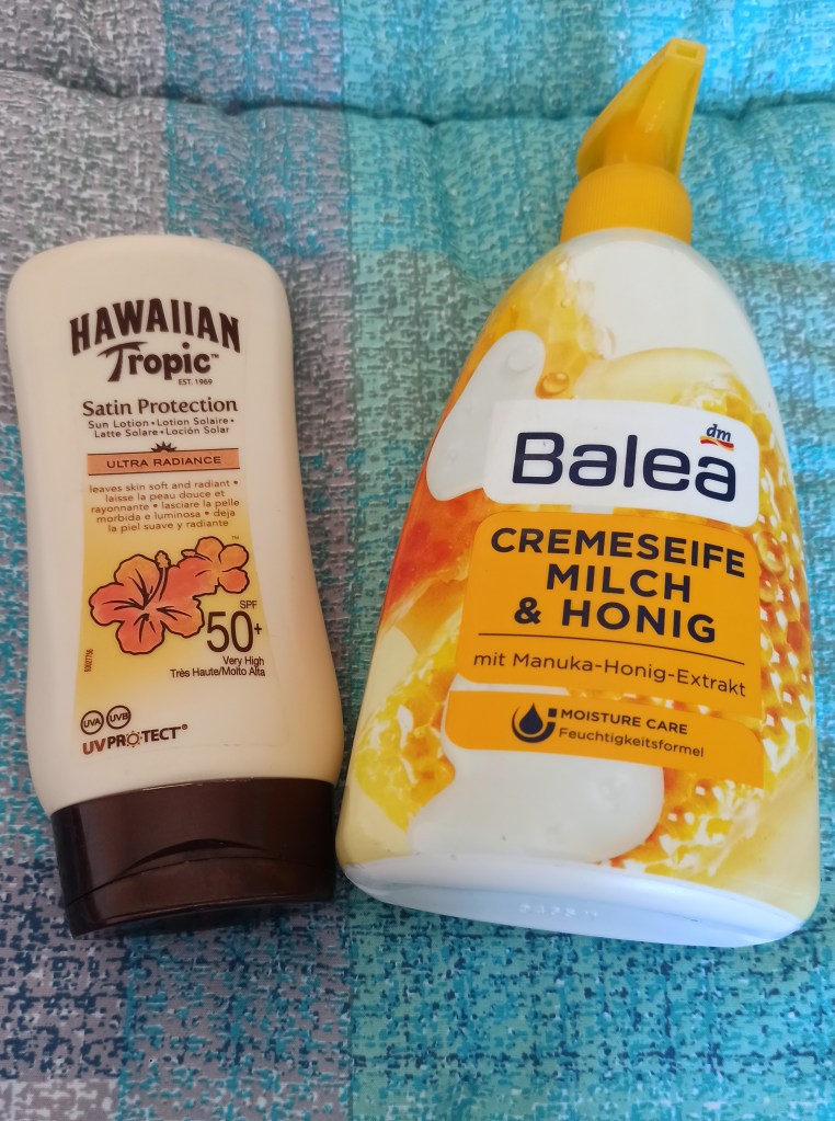 HAWAIIAN TROPIC-SATIN PROTECTION 50 +. Nonostante sia stata un’estate particolare, io e la mia famiglia siamo riusciti a farci una settimana a settembre a Jesolo e abbiamo utilizzato questa crema, che avevamo già provato in passato e sapevamo che ha un buon rapporto qualità prezzo. Non è pastosa e una volta applicata rimane sulla pelle un leggero luccichio. L’unica cosa che non mi ha fatto impazzire è la profumazione. Continuerò a ricomprarla.