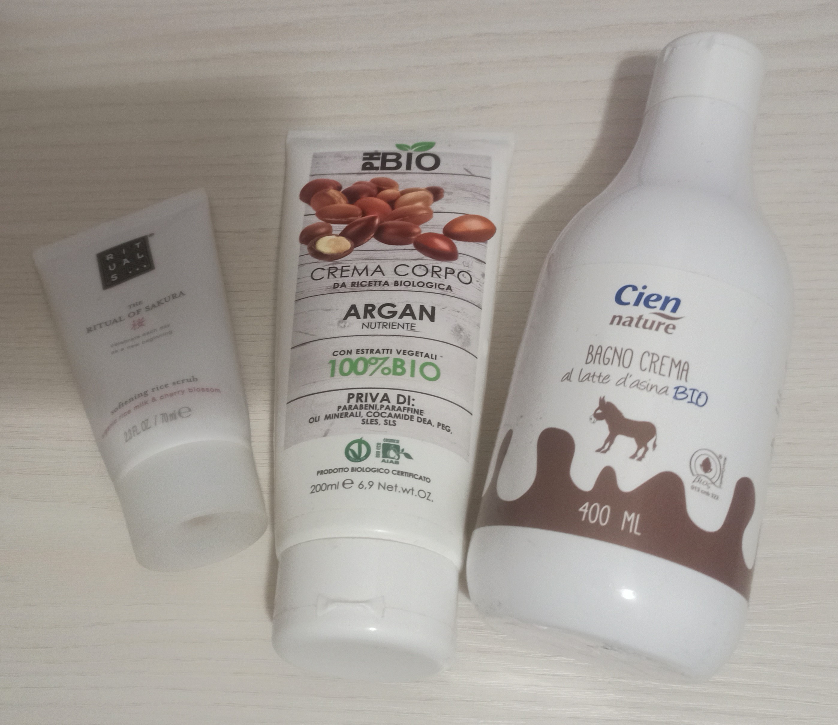 PH BIO – CREMA CORPO. Questa crema arriva dal Lidl. Io ho preso la versione all’argan nutriente. L’ho utilizzata giornalmente e mi ci sono trovata bene. Ha un buon potere idratante. Il prezzo è di 3,79 € per 200 ml.