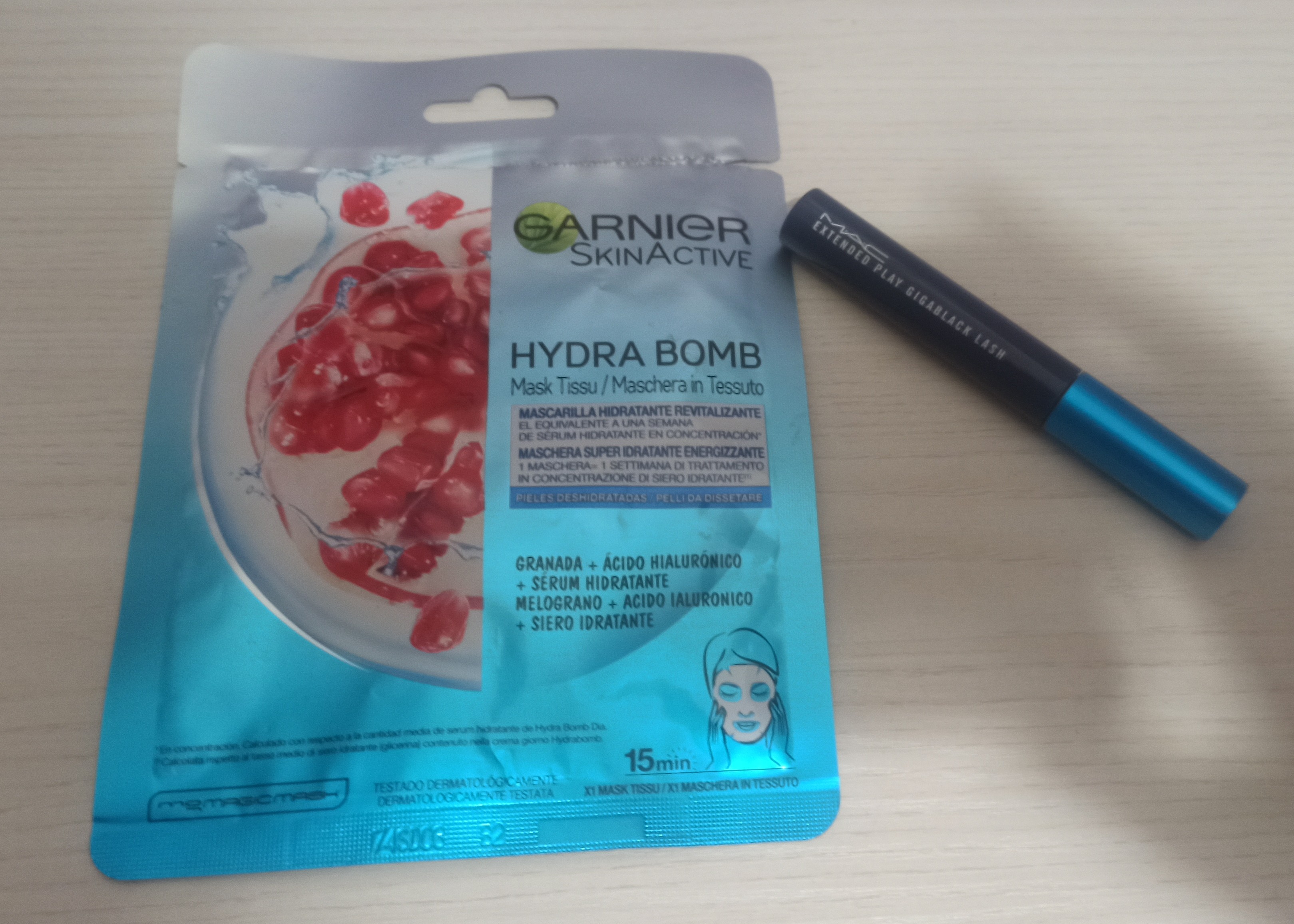 GARNIER – MASCHERA VISO HYDRA BOMB. È una maschera in tessuto. È davvero molto imbevuta di liquido però non cola e rimane ben ferma sul viso. Immediatamente risulta appiccicosa poi questa sensazione lascia spazio all’idratazione e alla freschezza.