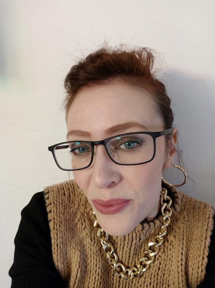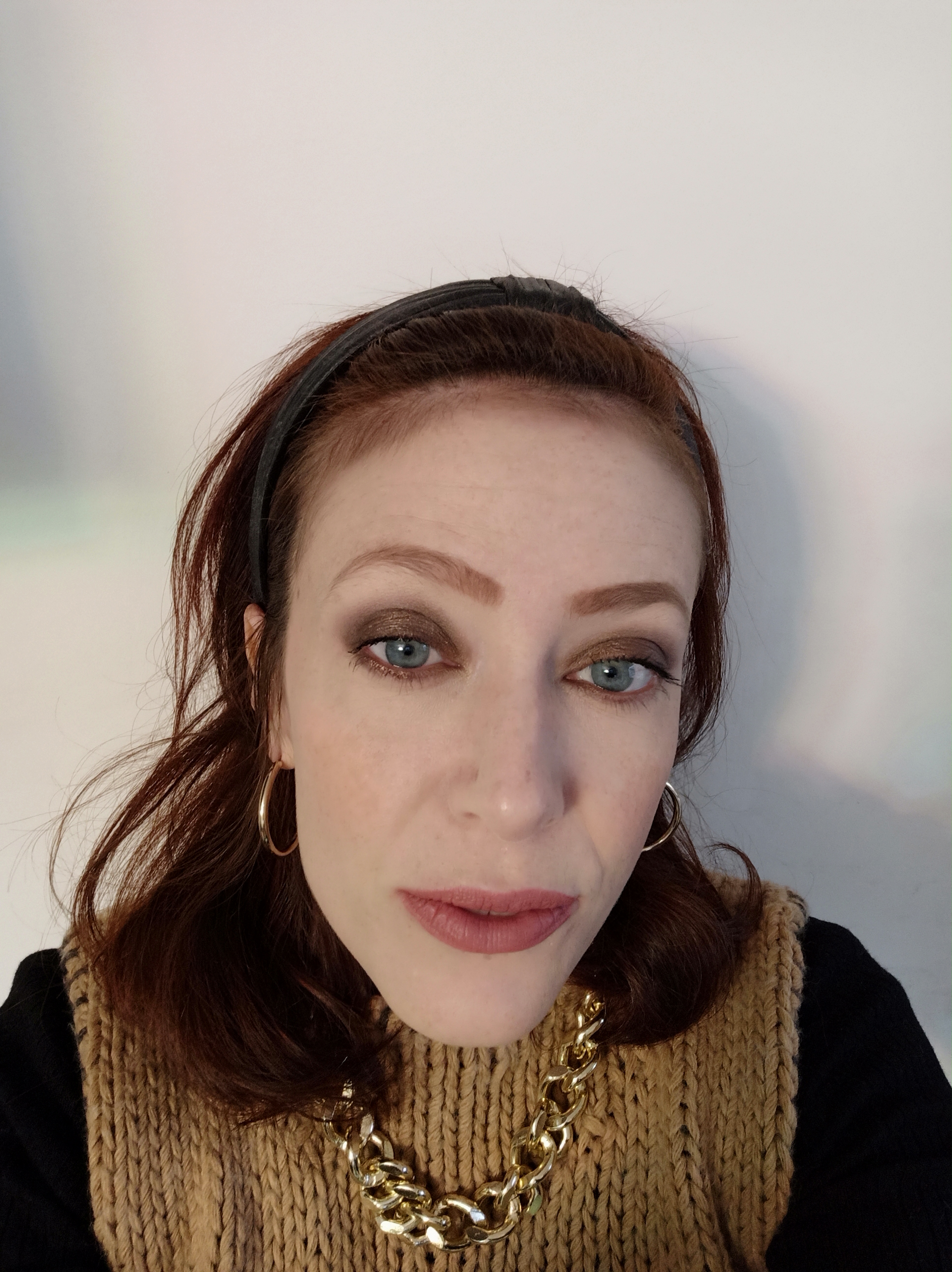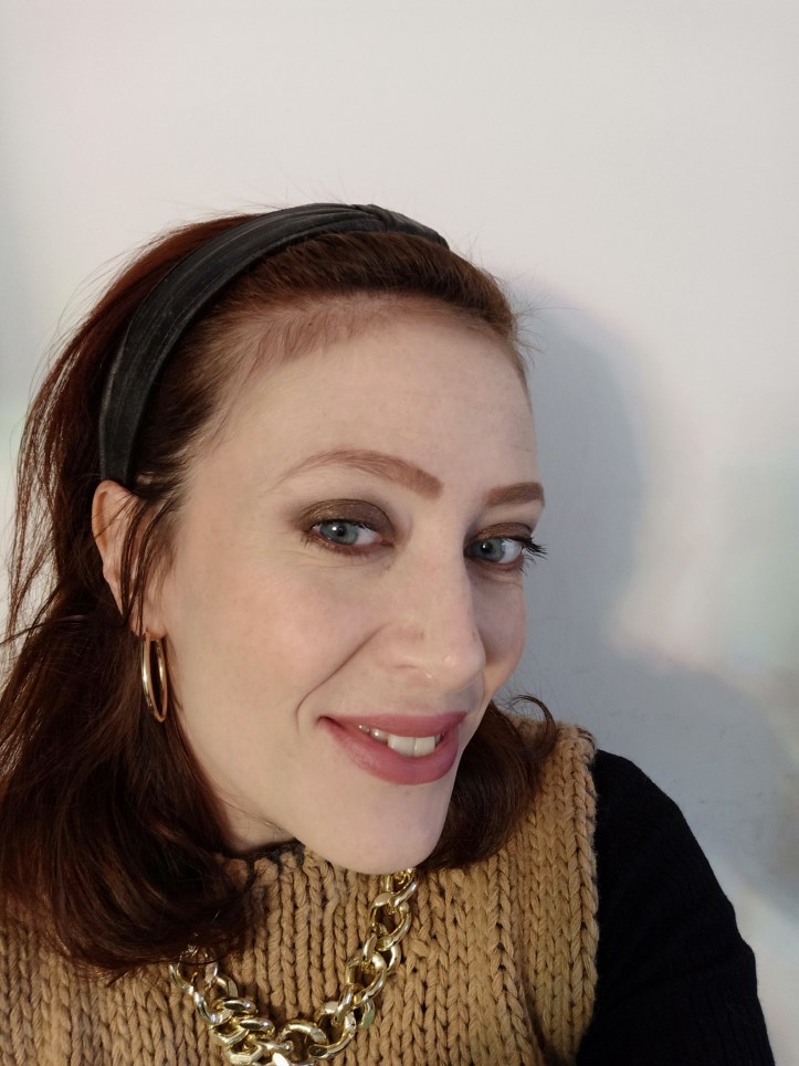 L’ ho applicato sulla palpebra mobile sfumando a lungo mantenendolo più scuro vicino all’ attaccatura delle ciglia, rinforzando con un nero mat di Kiko anche verso l’ esterno. Sotto l’ arcata sopraccigliare ho sfumato il color nude mat Bitter Start di Zoeva. Come punto luce ho usato un oro shimmer di Kiko.