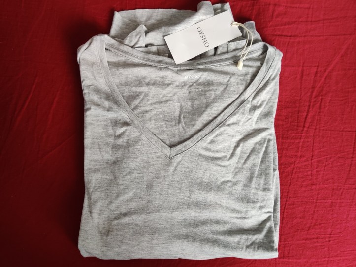 Una maglia grigia semplice 95% viscosa e 5% elastane, da abbinare ai pantaloni con le stelle, non avendo più trovato la taglia del pezzo sopra del pigiama.